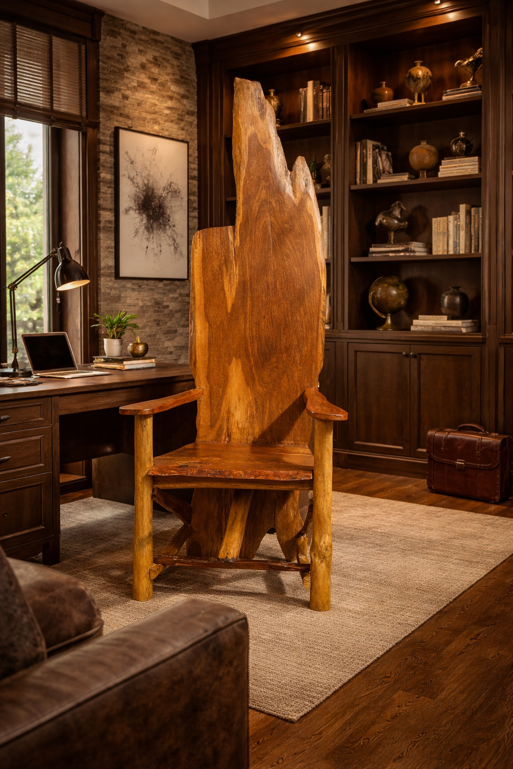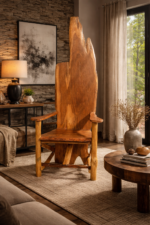 Power doesnāt need to speak , it sits. The Sovereign Slab Chair is a sculptural statement carved from a single liveedge slab, where raw nature meets intentional design. Beyond its visual dominance, it is engineered for functional presence: a structured seat, supportive armrests, and a commanding backrest that naturally positions the sitter at the center of attention. This is not just seating . it is positional design. Belongs to executive offices, conference rooms, luxury residences, hospitality spaces, creative studios & galleries, reception areas . The Sovereign Slab Chair doesnāt follow design, it defines it. In stock – Send a Dm to own this piece